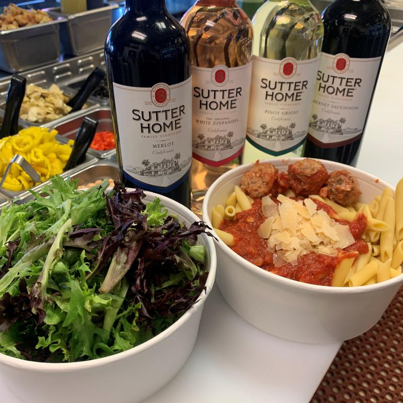 Treat yourself to 2 large pasta or salad bowls plus a large bottle of Woodbridge wine. Salmon & calamari are available for an additional charge